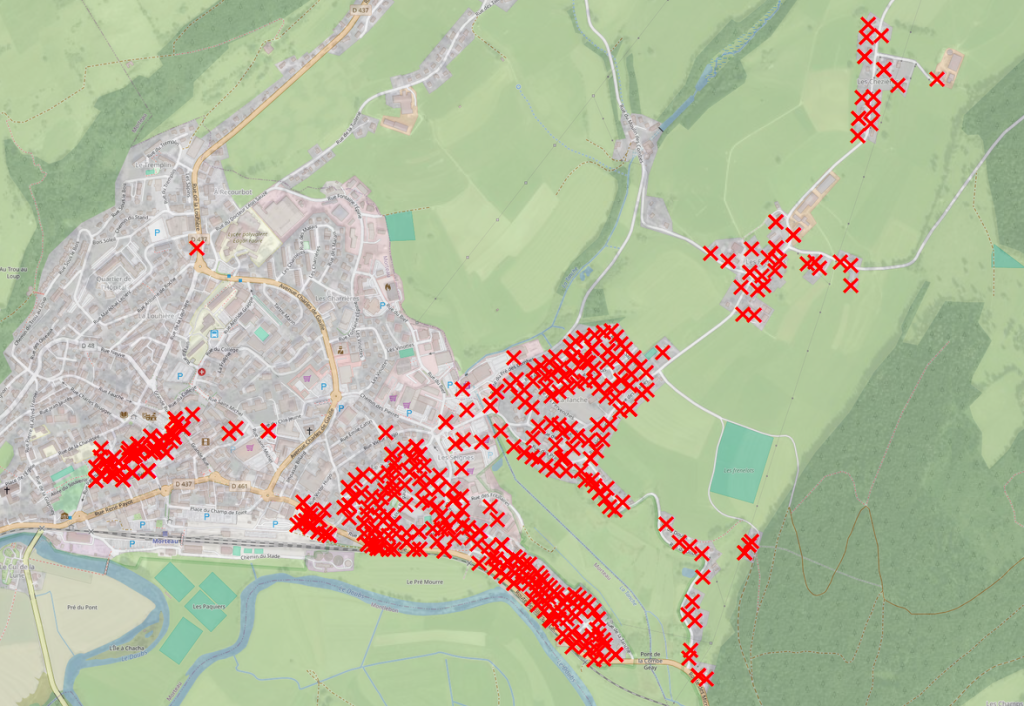 Du 10/11/2025 au 21/11/2025, l’exploitant DIOPTIC / Altitude Infra. va procéder à une remise en conformité complète du local technique du réseau fibre optique situé rue de la Guron à Morteau. Il concerne les habitations et entreprises marquées par une croix rouge sur la carte ci-dessous.